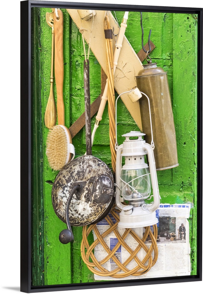 <p>Items for sale hanging on the door of a small storefront in old town Ostuni.</p>