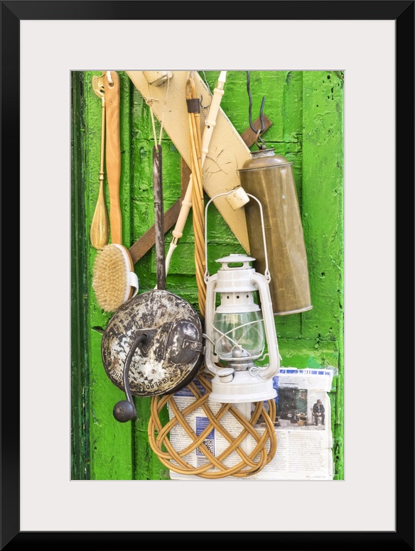 <p>Items for sale hanging on the door of a small storefront in old town Ostuni.</p>