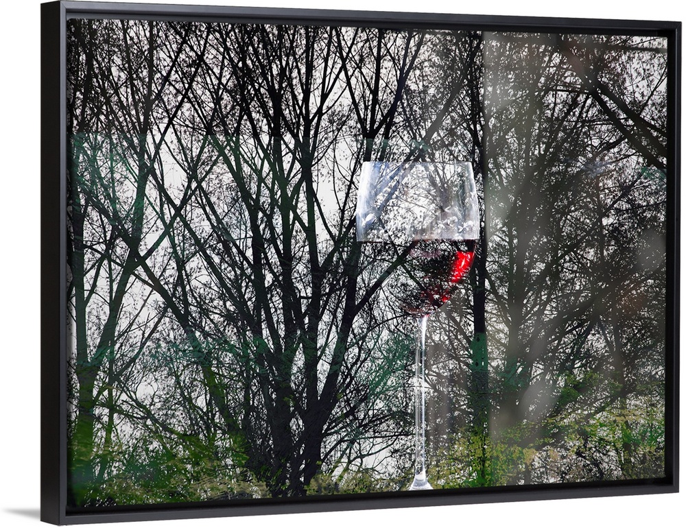 <p>Conceptual photograph of a glass of red wine blending in with silhouetted forest trees with hints of green at the bottom.</p>