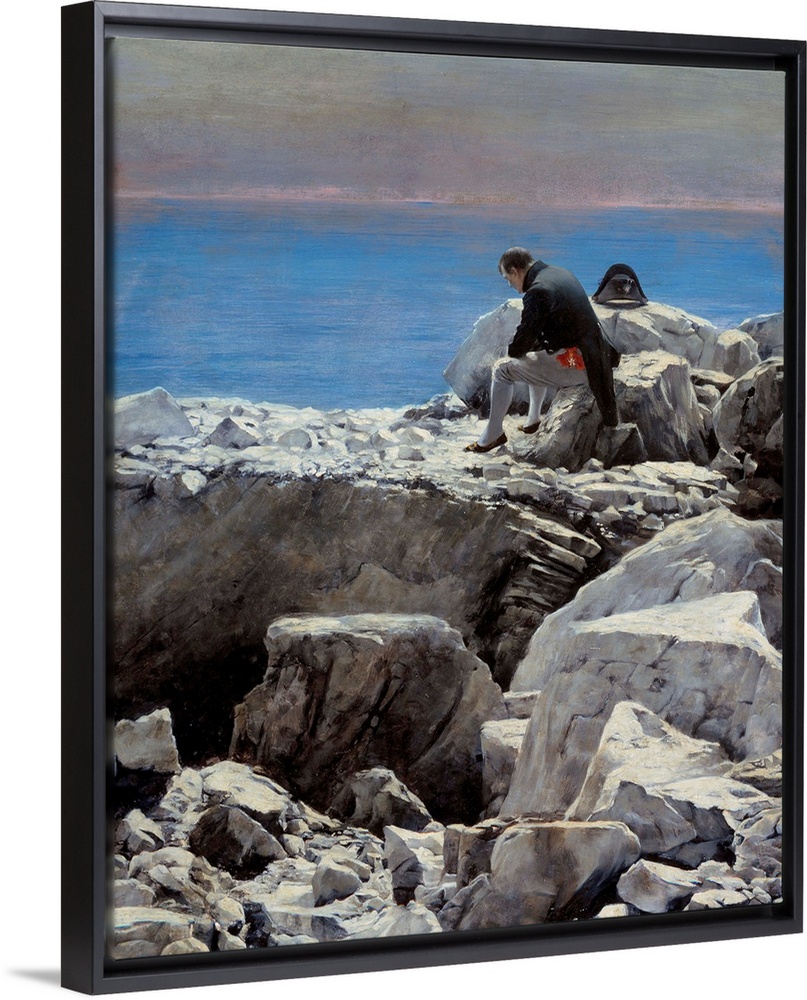 <p>It's over, Napoleon I in Saint Helena (1769-1821). The Emperor in exile is represented alone, in a melancholy pose on a rock of Saint Helena's Island. Painting by Oscar Rex (1857-1929), 19th century. 0,76 x 0,67 m. Castle Museum, Malmaison, France</p>