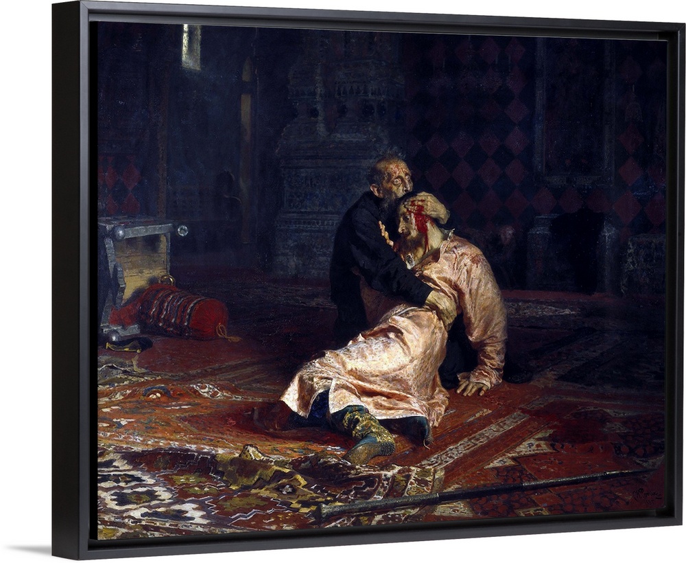 <p>Repin, Ilya Yefimovich (1844-1930). Ivan the Terrible and his son Ivan on 16 November, 1581 Ivan the Terrible and his son Ivan on 16 November, 1581. 1885. Realism. Oil on canvas. RUSSIA. Moscow. Tretyakov Gallery. -</p>
