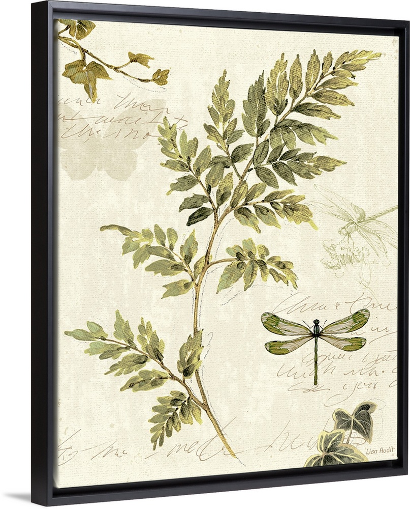 Art Traditional Living Room Art Lisa Audit Decorative Art Ferns Green Wall Art Painting Botanicals Insect and Arachnid Dragonfly