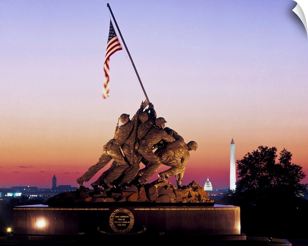<p>Iwo Jima Memorial at dawn, Washington Monument, Washington DC, USA</p>