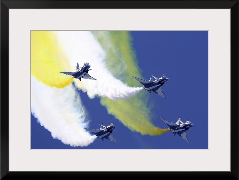 <p>J-10A jet fighters of the Chinese Air Force August 1st aerobatic team performing in Kubinka, Russia</p>