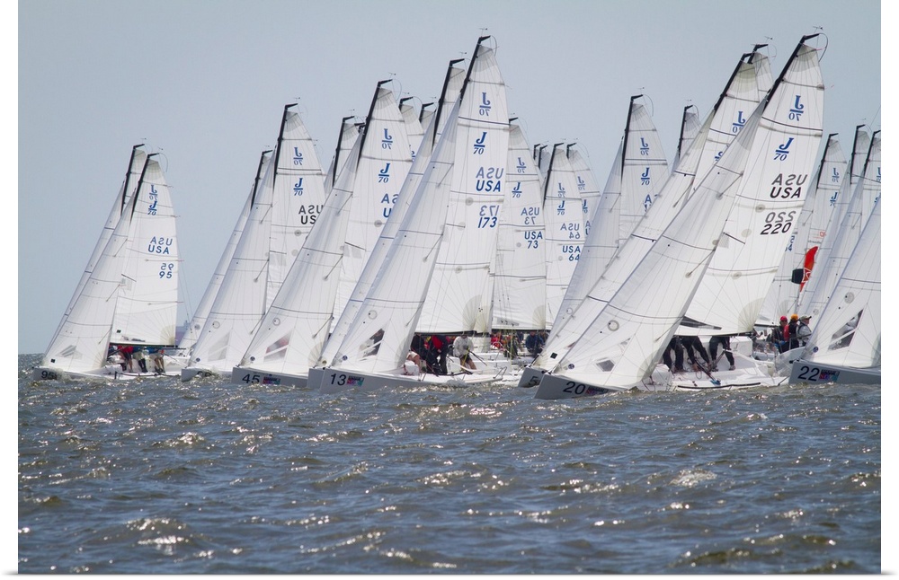 <p>J-70 sailboars on the starting line of a regatta on the Chesapeake Bay near Annapolis, MD</p>