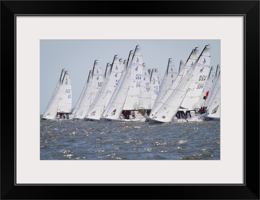 <p>J-70 sailboars on the starting line of a regatta on the Chesapeake Bay near Annapolis, MD</p>