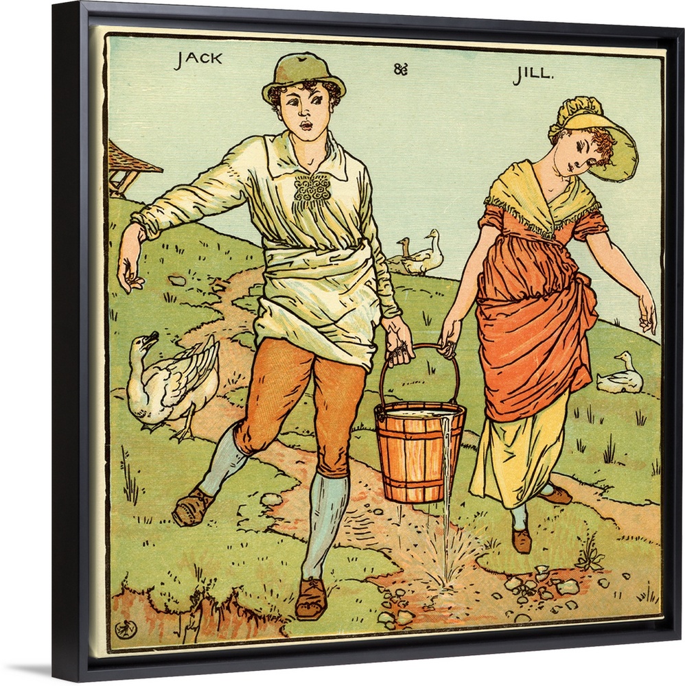 <p>Jack and Jill, nursery rhyme, illustration (1877) by Walter Crane. English artist of Arts and Crafts movement, 15 August 1845-14 March 1915 From Baby's Opera (A book of old rhymes with new dresses) by Walter Crane, page 53.</p>
