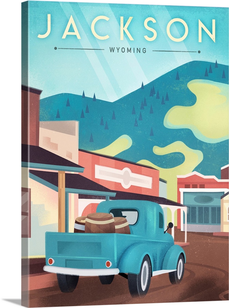 Art Blue Wall Art Decorative Art Graphic Art Landscapes Mountains Wyoming Transportation Truck Travel Posters Contemporary Travel Posters Martin Wickstrom