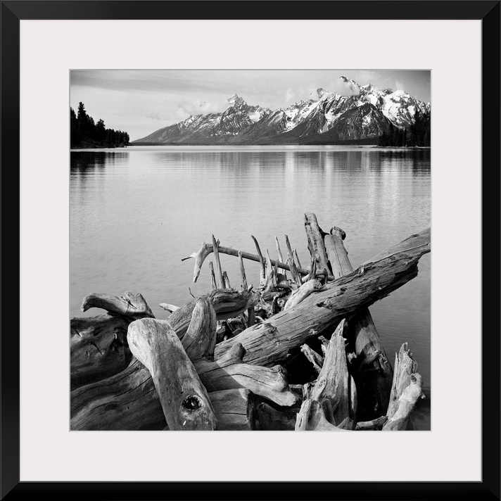 <p>Jackson Lake in foreground, with Teton Range in background, view looking southwest from north end of the lake.</p>