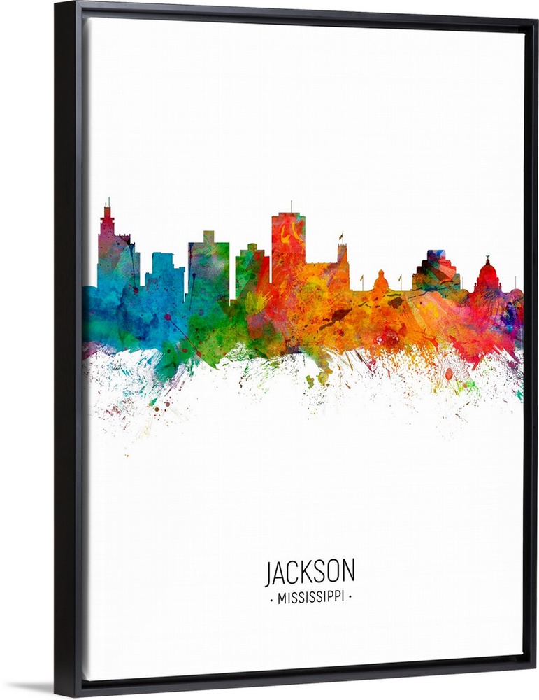 <p>Watercolor art print of the skyline of Jackson, Mississippi, United States</p>