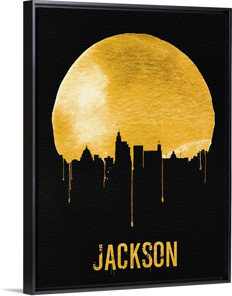 <p>Contemporary watercolor artwork of the Jackson city skyline, in silhouette.</p>