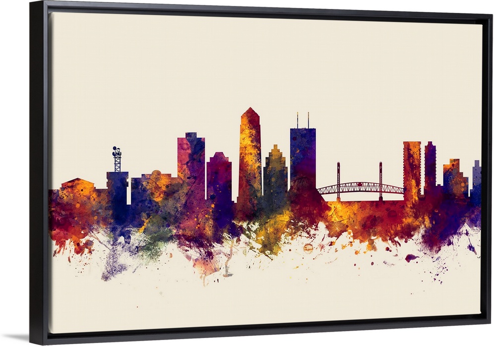 <p>Watercolor art print of the skyline of Jacksonville, Florida, United States</p>