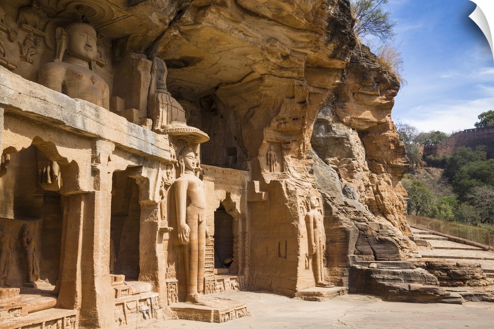 <p>Jain images cut into the cliff rock of Gwalior Fort, Gwalior, Madhya Pradesh, India, Asia</p>