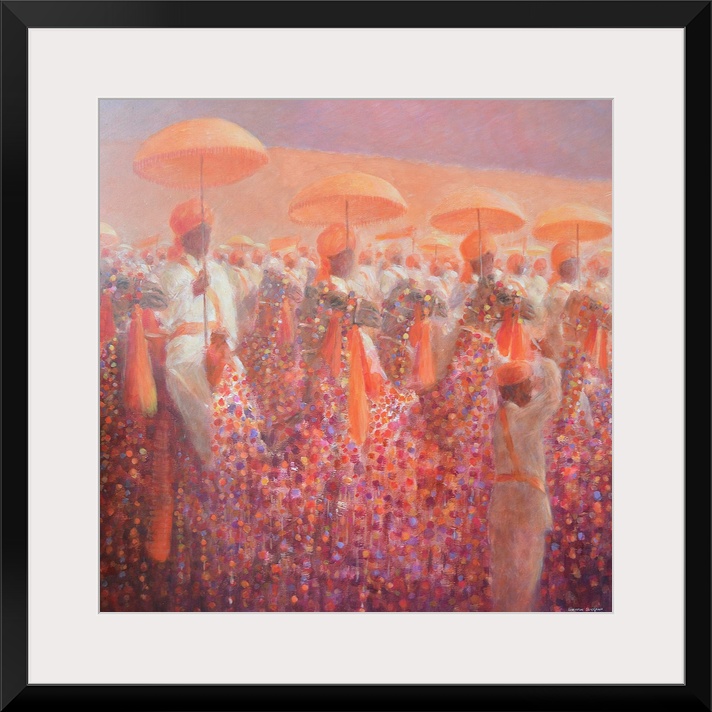 Umbrellas Art Bohemian Contemporary Art Orange Wall Art Peach Painting People Lincoln Seligman