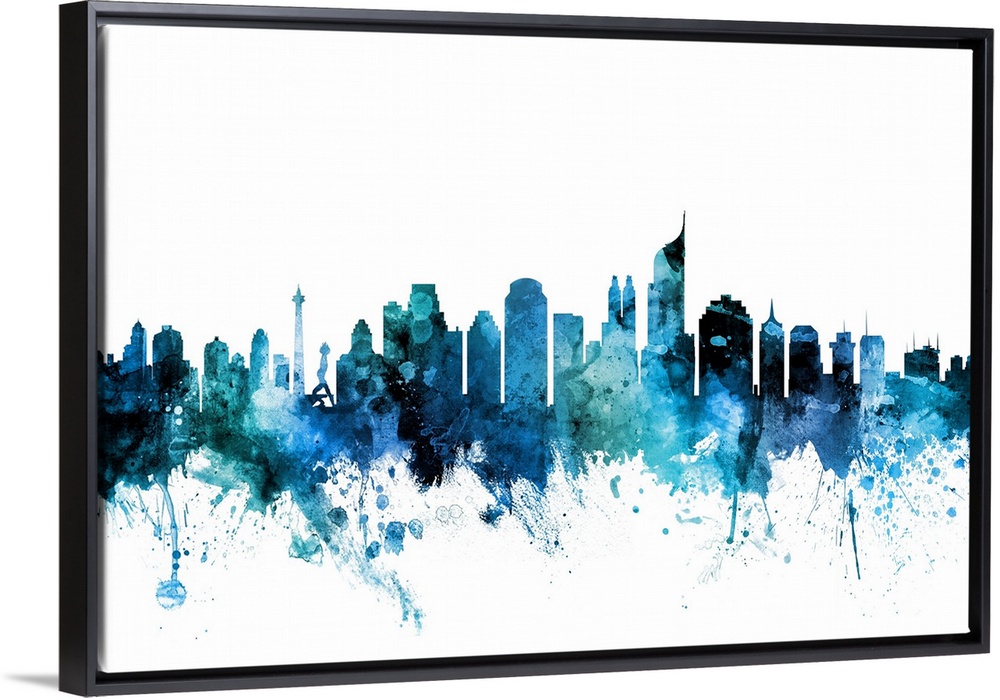 <p>Watercolor art print of the skyline of Jakarta, Indonesia.</p>