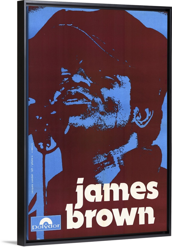 <p>A vintage poster of James Brown that uses only blue and a deep red color to silhouette his portrait.</p>