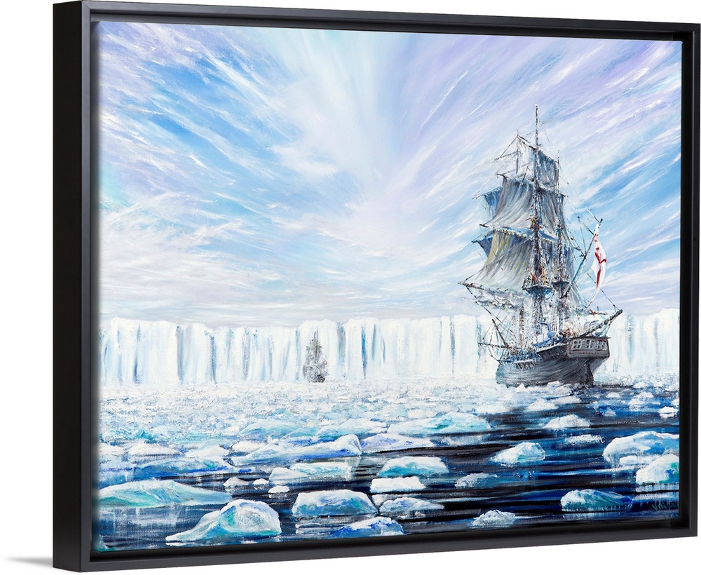 <p>James Clark Ross discovers Antarctic Ice Shelf, January 1841, 2016, oil on canvas.</p>