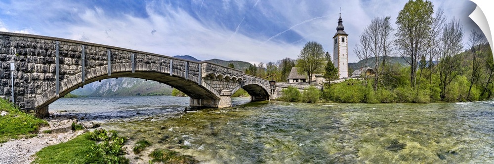 <p>Janezs bridge and Church of St. John the Baptist, Lake Bohinj, Slovenia</p>