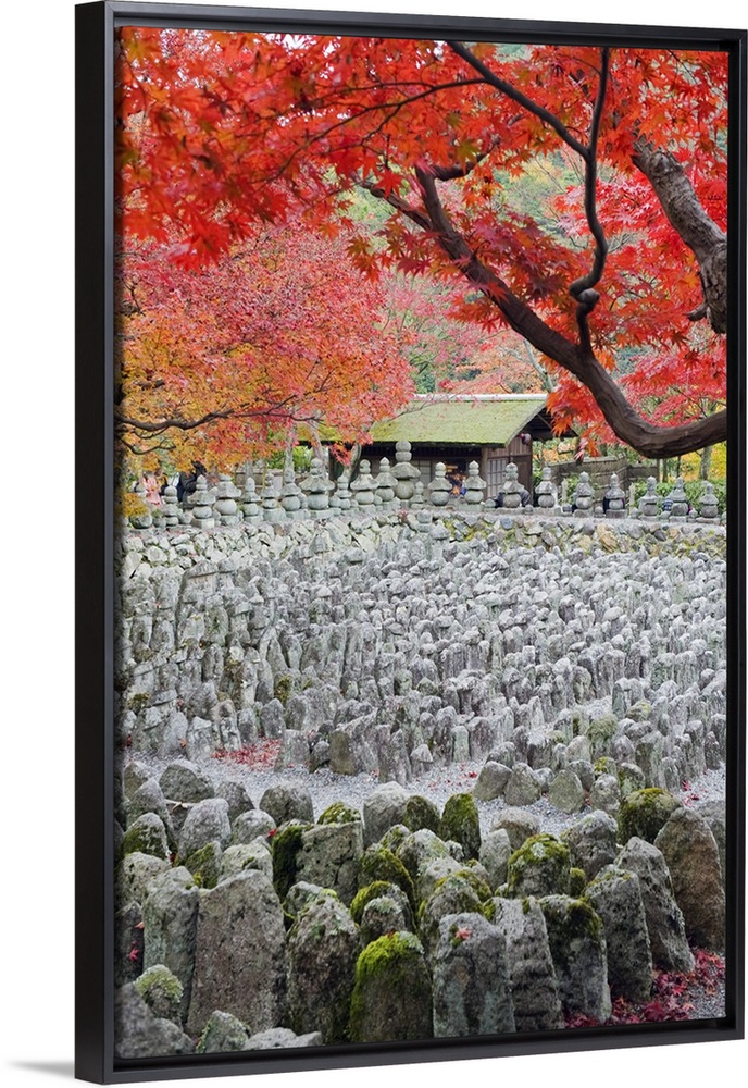 <p>Asia, Japan. Kyoto, Sagano, Arashiyama, Adashino Nenbutsu dera temple, stone lanterns and buddha images.</p>