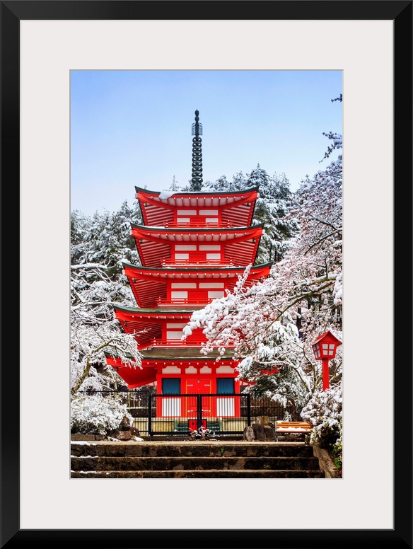 <p>Japan, Chubu, Fuji-Hakone-Izu National Park, Chureito Pagoda, Arakura Sengen Shrine during cherry blossom, sakura.</p>