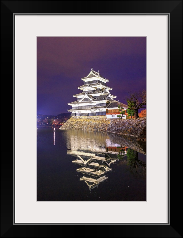 <p>Japan, Chubu, Matsumoto, Matsumoto Castle during the cherry blossom, sakura, by night.</p>