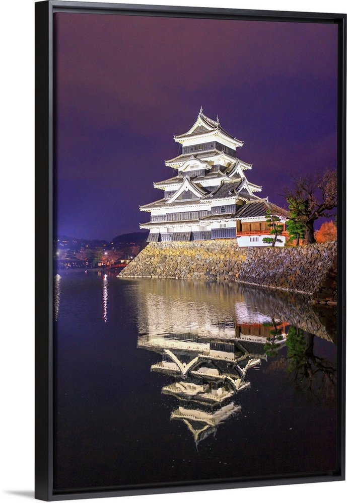 <p>Japan, Chubu, Matsumoto, Matsumoto Castle during the cherry blossom, sakura, by night.</p>