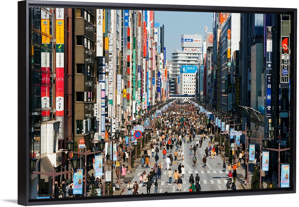 <p>Asia, Japan, Honshu, Tokyo, Ginza, elevated view along Chuo-dori, the most fashionable shopping street in Tokyo</p>