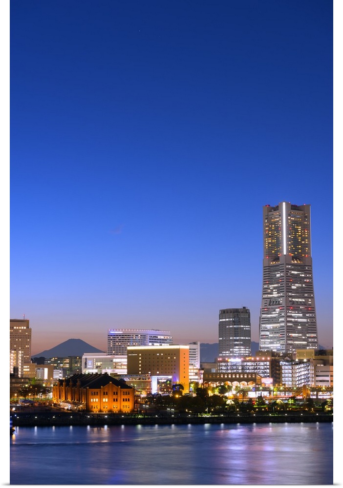 <p>Asia, Japan, Honshu, Yokohama Bay, city skyline and Mt Fuji, Landmark Tower.</p>