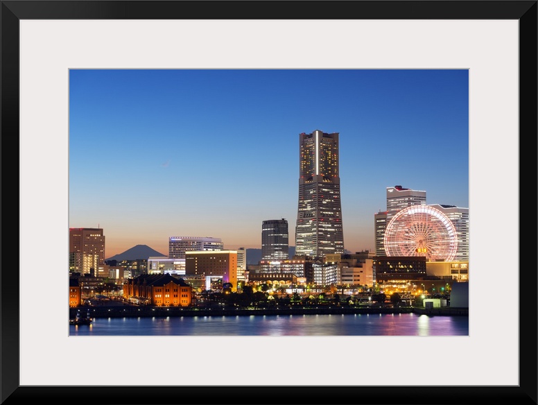 <p>Asia, Japan, Honshu, Yokohama Bay, city skyline and Mt Fuji, Landmark Tower.</p>