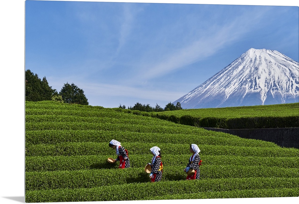 <p>Japan, Shizuoka, Fuji, Honshu island, Tea harvest at the feet of Mount Fuji</p>