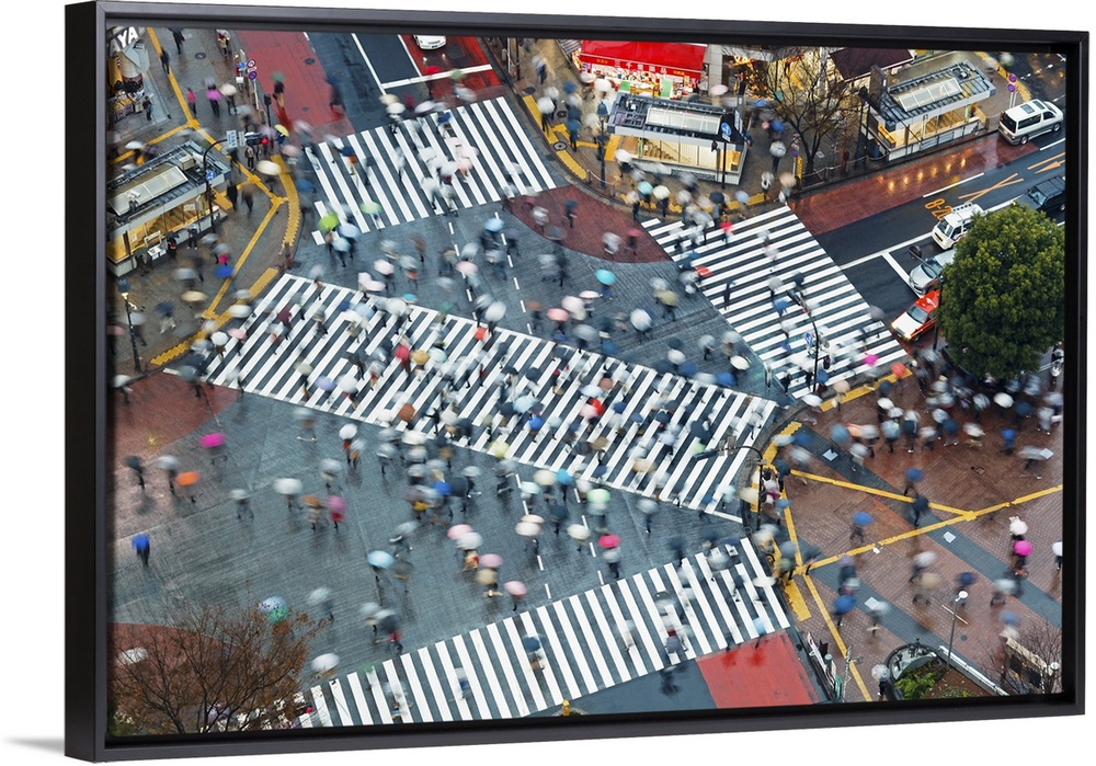 <p>Asia, Japan, Tokyo, Shibuya, Shibuya Crossing - crowds of people crossing the famous crosswalks at the centre of Shibuyas fashionable shopping and entertainment district - elevated view</p>
