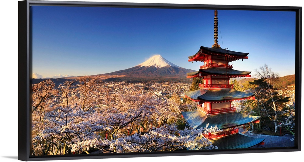 <p>Japan, Yamanashi Prefecture, Fuji-Yoshida, Chureito Pagoda and Mt Fuji during Cherry Blossom Season.</p>