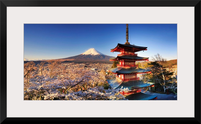 <p>Japan, Yamanashi Prefecture, Fuji-Yoshida, Chureito Pagoda and Mt Fuji during Cherry Blossom Season.</p>