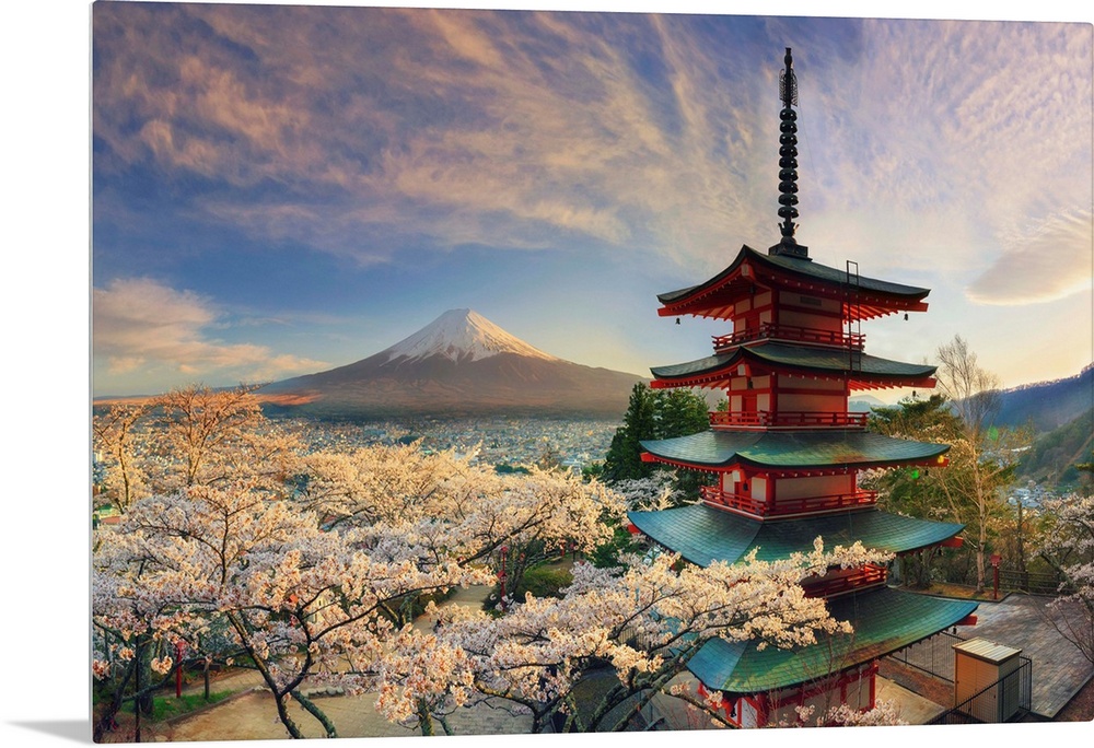 <p>Japan, Yamanashi Prefecture, Fuji-Yoshida, Chureito Pagoda, Mt Fuji and Cherry Blossoms.</p>