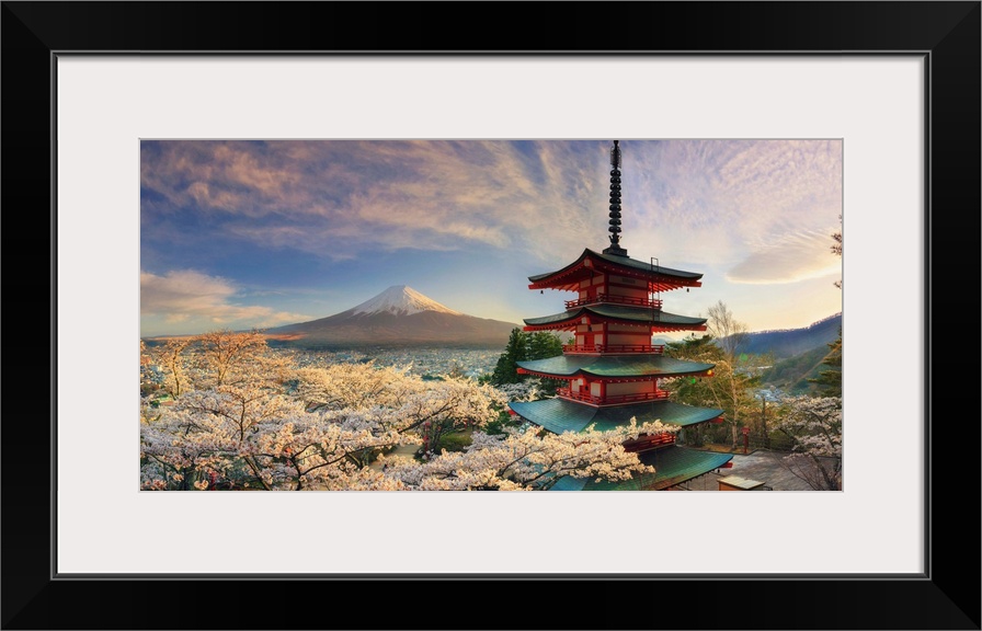 <p>Japan, Yamanashi Prefecture, Fuji-Yoshida, Chureito Pagoda, Mt Fuji and Cherry Blossoms.</p>