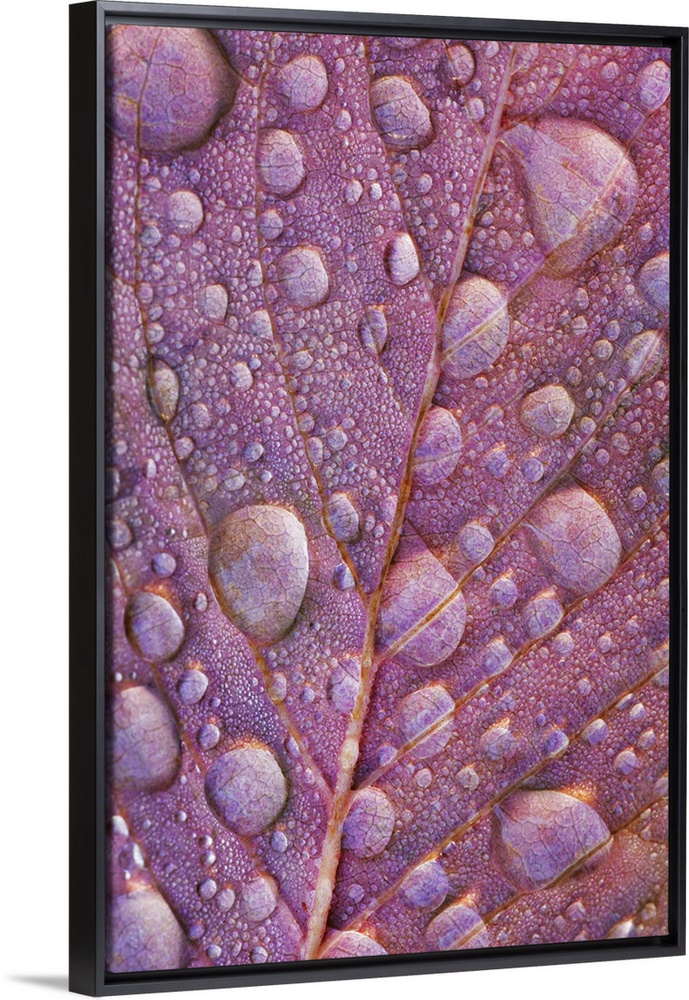 <p>Japanese cherry autumn leaf with raindrops. Germany, Bavaria, Upper Bavaria, Munich, Oberhaching. Bavaria, Western Europe, Germany.</p>