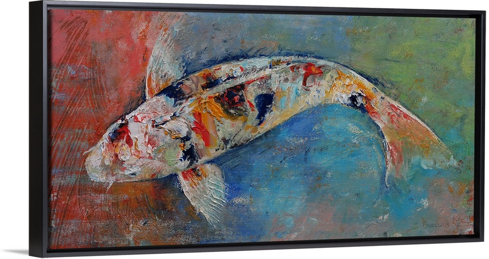 <p>A contemporary painting of a koi against a multi-colored background.</p>