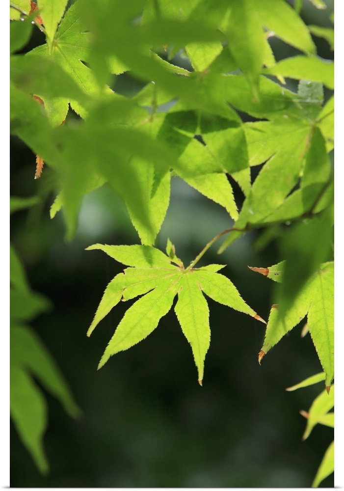 <p>Bright green Japanese Maple trees in their Spring foliage at the Ryouan-Ji Temple, Kyoto, Japan.</p>