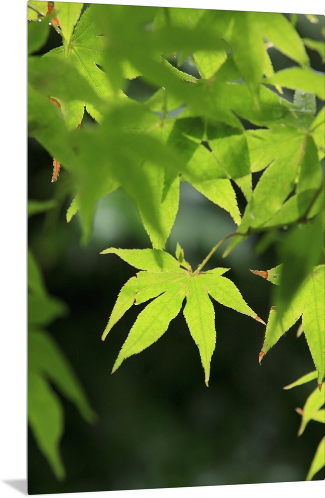 <p>Bright green Japanese Maple trees in their Spring foliage at the Ryouan-Ji Temple, Kyoto, Japan.</p>