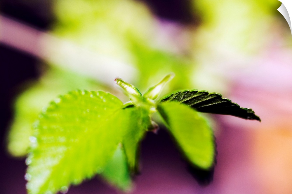 <p>Tiny leaves are photographed closely with the focus on a couple and the others appear blurry.</p>