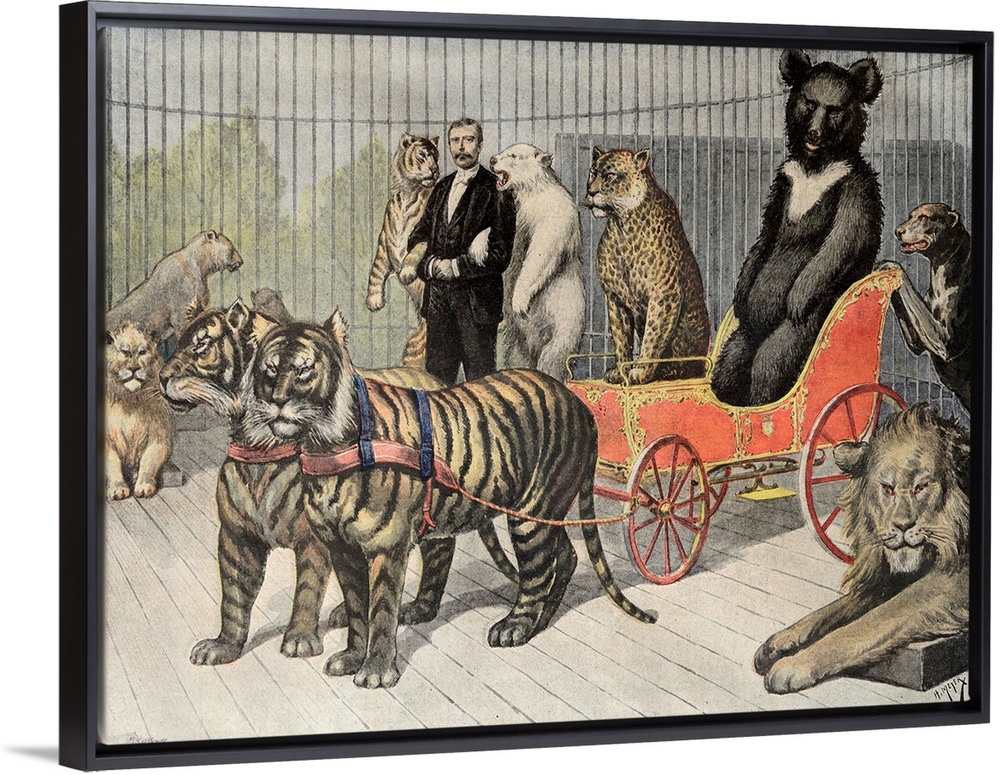 <p>A Fanciful Image of Circus Animals inluding Tigers and Bears in a Cage at the Jardin d'Acclimatation Paris Zoo (1895)</p>
