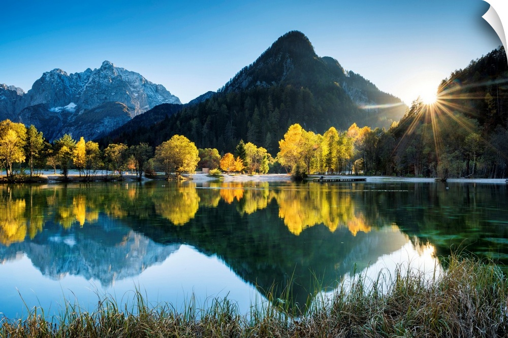 <p>Jasna Lake In Autumn, Near Kranjska Gora, Slovenia, Europe</p>