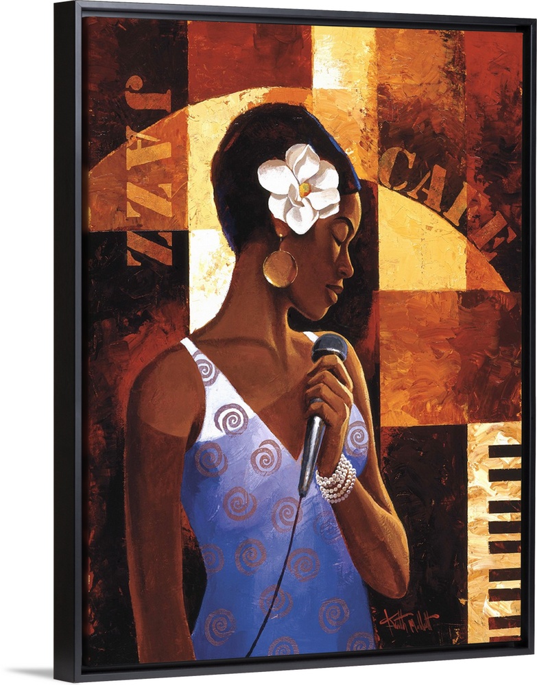 <p>Contemporary painting of a jazz singer holding a microphone.</p>
