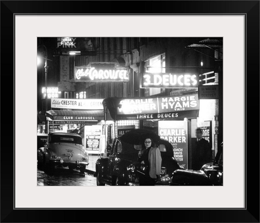 <p>Jazz clubs and mightclubs on 52nd Street in New York City. Photograph by William P. Gottlieb, c1948.</p>