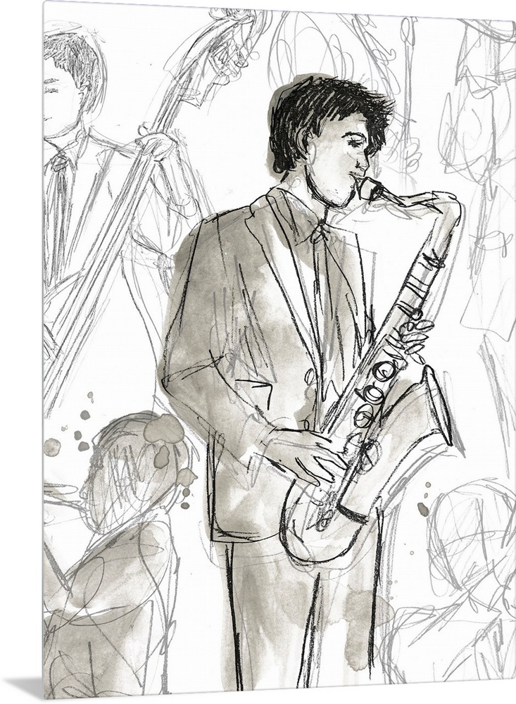 Art Traditional Contemporary Art Figurative Drawing Grey Wall Art Music Jazz People Portraits June Erica Vess