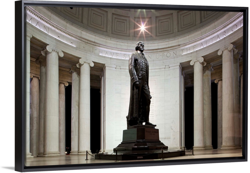 <p>USA, Washington, District of Columbia, Statue inside Jefferson Memorial at night on summer evening</p>
