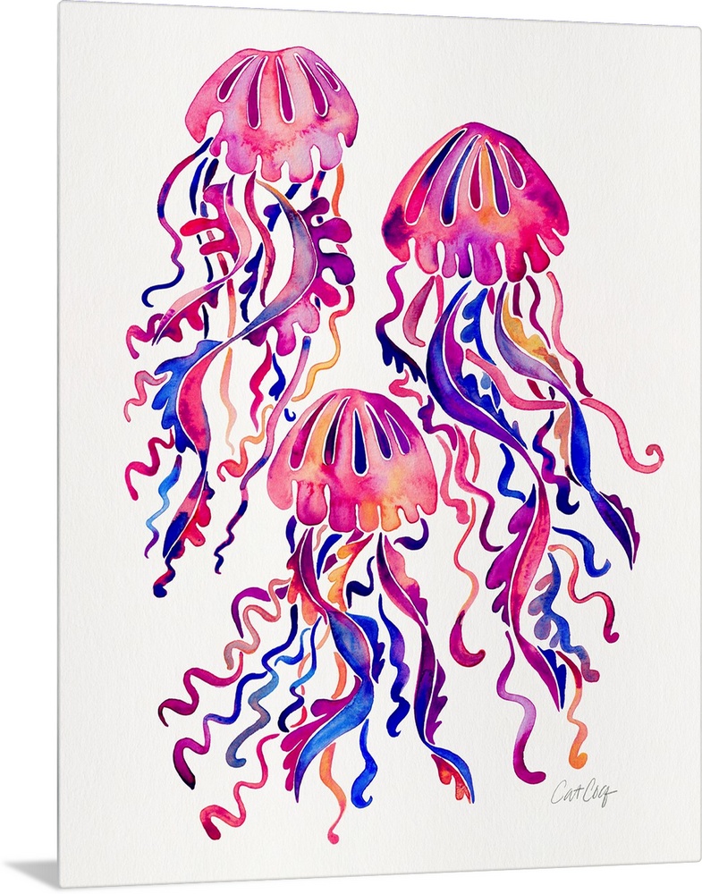 Art Cat Coquillette Decorative Art Painting Pink Wall Art Watercolor Wildlife Marine Life Jellyfish
