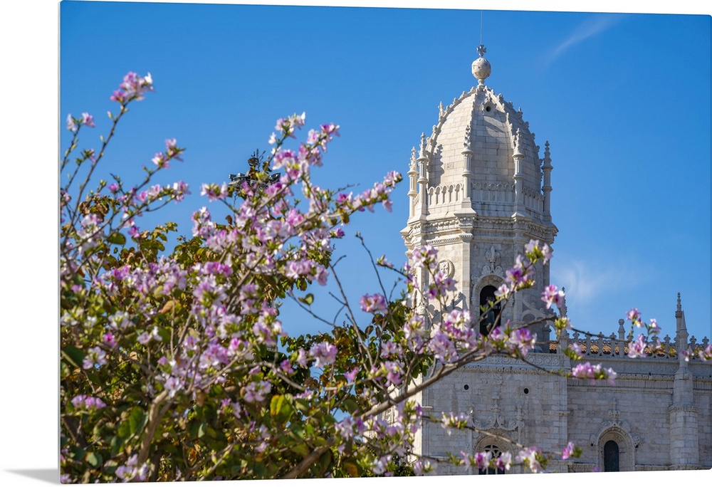 <p>View of JerAlnimos Monastery (Monastery of the Hieronymites) and spring blossom in Empire Square Garden on a sunny day, Lisbon, Portugal, Europe</p>