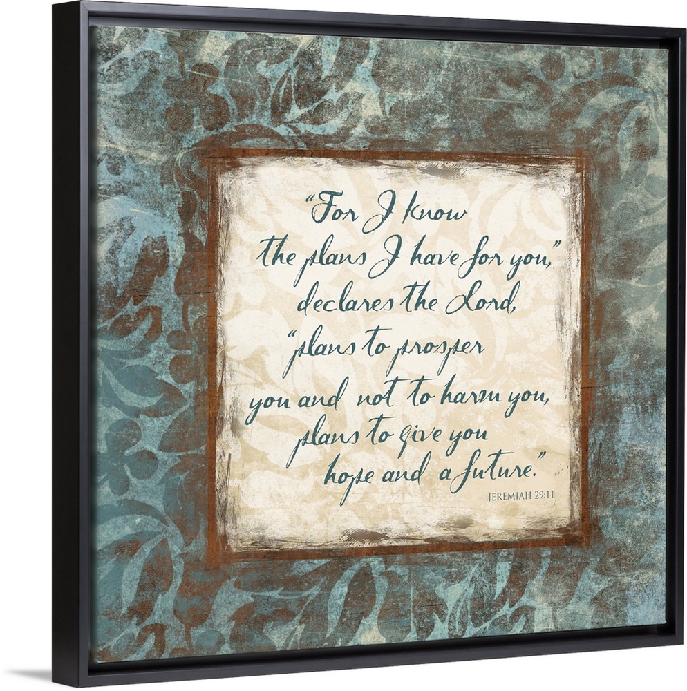 <p>Scripture artwork with script "Jeremiah 29:11" from the bible, surrounded by a floral pattern.</p>