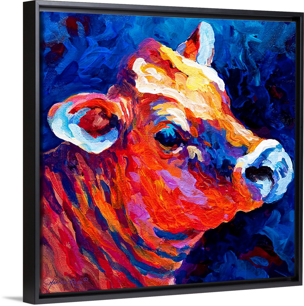 <p>Contemporary painting of cow. The image is created using long, wide brush strokes of color.</p>